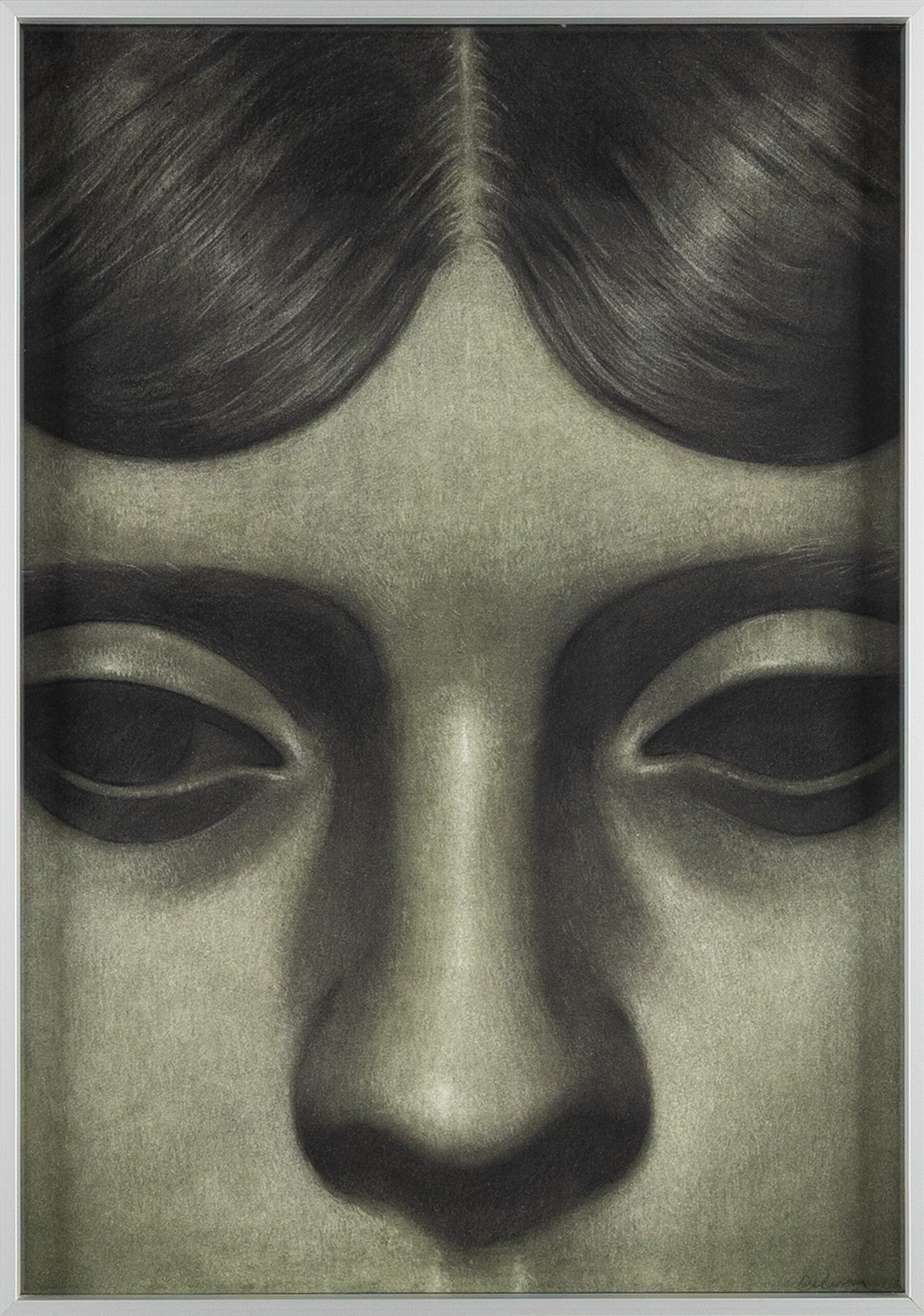Enes Debran ise portre odaklı pratiğinde içe doğru bir hat açar. Kimliksiz ve düşündürücü bu yüzler, izleyiciyle kırılganlık ile meydan okuma arasında salınan bir bakışla buluşur. Yumuşak tonlar, eriyik gölgeler ve füzen ile boyanın katmanlarında çözünüp yeniden beliren biçimler, Debran’ın portrelerinde puslu bir atmosfer yaratır. Sanatçının yakın kadraj yaklaşımı, çevresel her türlü ipucunu dışarıda bırakır ve izleyiciyi doğrudan, neredeyse yüzleşmeye dönüşen bir karşılaşmaya davet eder.