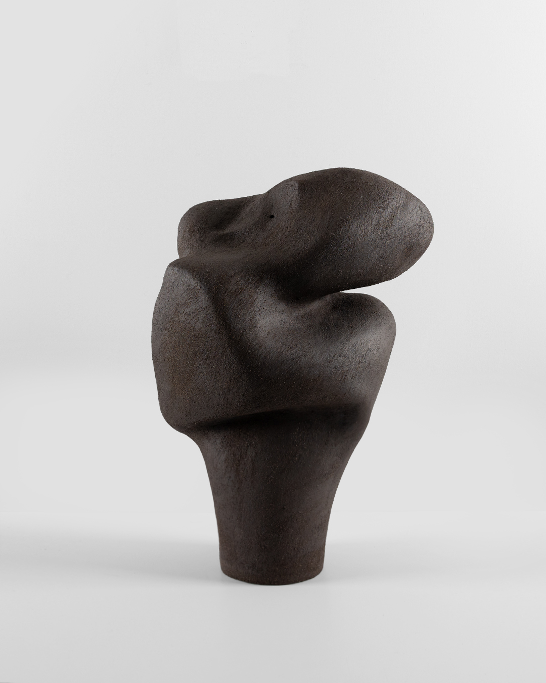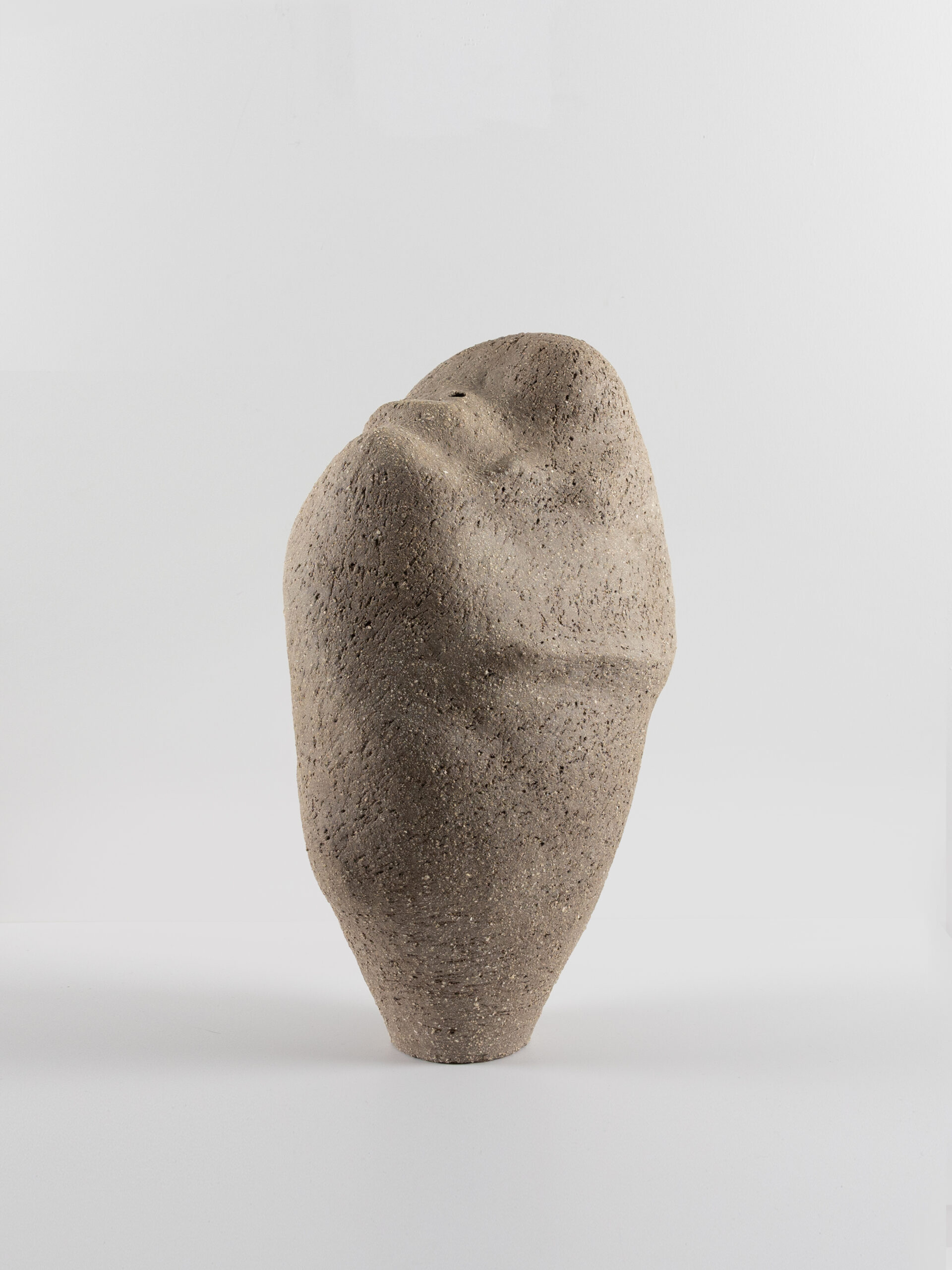 Meltem Evin Şahin’in, doğal ve jeolojik oluşumları çağrıştıracak kadar akıcı ve kıvrımlı silüetlere sahip seramik heykelleri, organik ve amorf bedenler olarak var olur. Ancak yüzeyleri, temas dürtüsüne direnir. Şamotlu, sert, neredeyse aşındırıcı kil, kendine özgü gösterişsiz, ödünsüz, mesafeli var oluş biçimini diretir. Form ile doku arasındaki bu gerilim, en yumuşak kıvrımların bile bir keskinlik taşıyabileceğini hatırlatan sessiz bir söylemdir.
